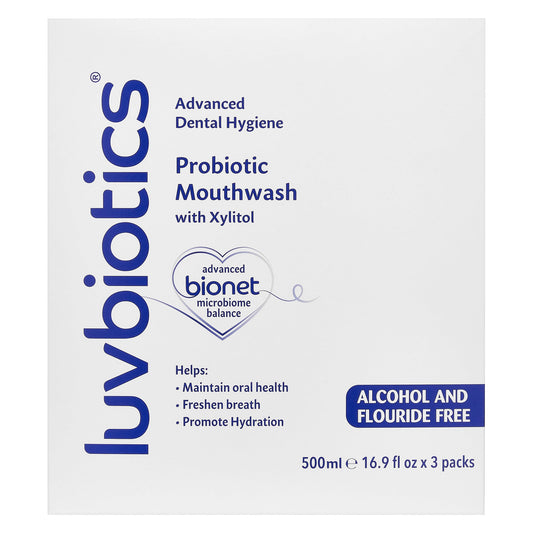 Luv Biotics Original Mouthwash with Oral Probiotics, Xylitol & Aloe Vera - 3 x 500ml