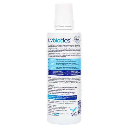 Luv Biotics Alcohol & Fluoride Free Mouthwash with Oral Probiotics, Xylitol & Aloe Vera – 3 x 500ml