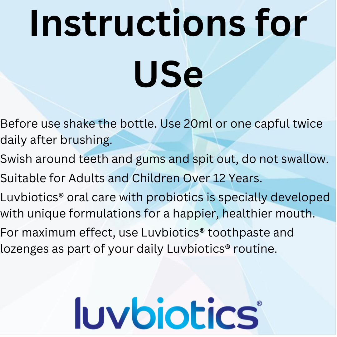 - HAPPY HEALTHY MOUTH – Luvbiotics mouthwash helps you maintain healthier gums, freshen your breath, fight tooth decay & reduce plaque