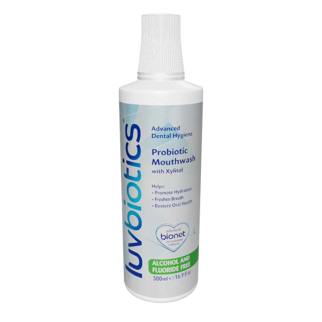 Luv Biotics Alcohol & Fluoride Free Mouthwash with Oral Probiotics, Xylitol & Aloe Vera – 3 x 500ml