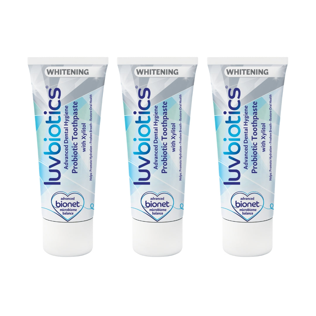 Luv Biotics Whitening Toothpaste with Oral Probiotics, Xylitol & Aloe Vera – 3 x 75ml