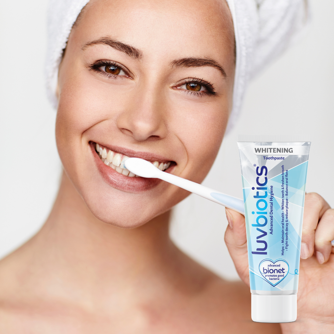 For an even happier, healthier mouth use Luvbiotics Mouthwash and Lozenges to brush, cleanse and maintain oral hygiene as part of your daily dental routine.